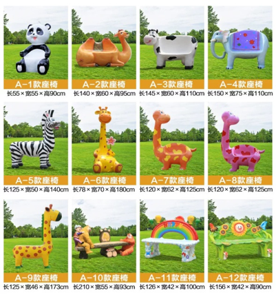 兒童卡通座椅雕塑 材質:環保玻璃鋼; 工藝:手工上色、雕刻; 顏色:多色; 款式:多種款式可選;
